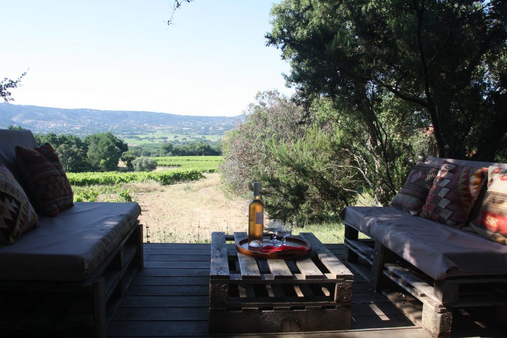 We installed this small vintage caravan in the garden, leaning against the hill. From its teak terrace, a drink in hand, you will enjoy the sunsets and the breathtaking view over the vineyards. You will be awakened by the singing of the birds.